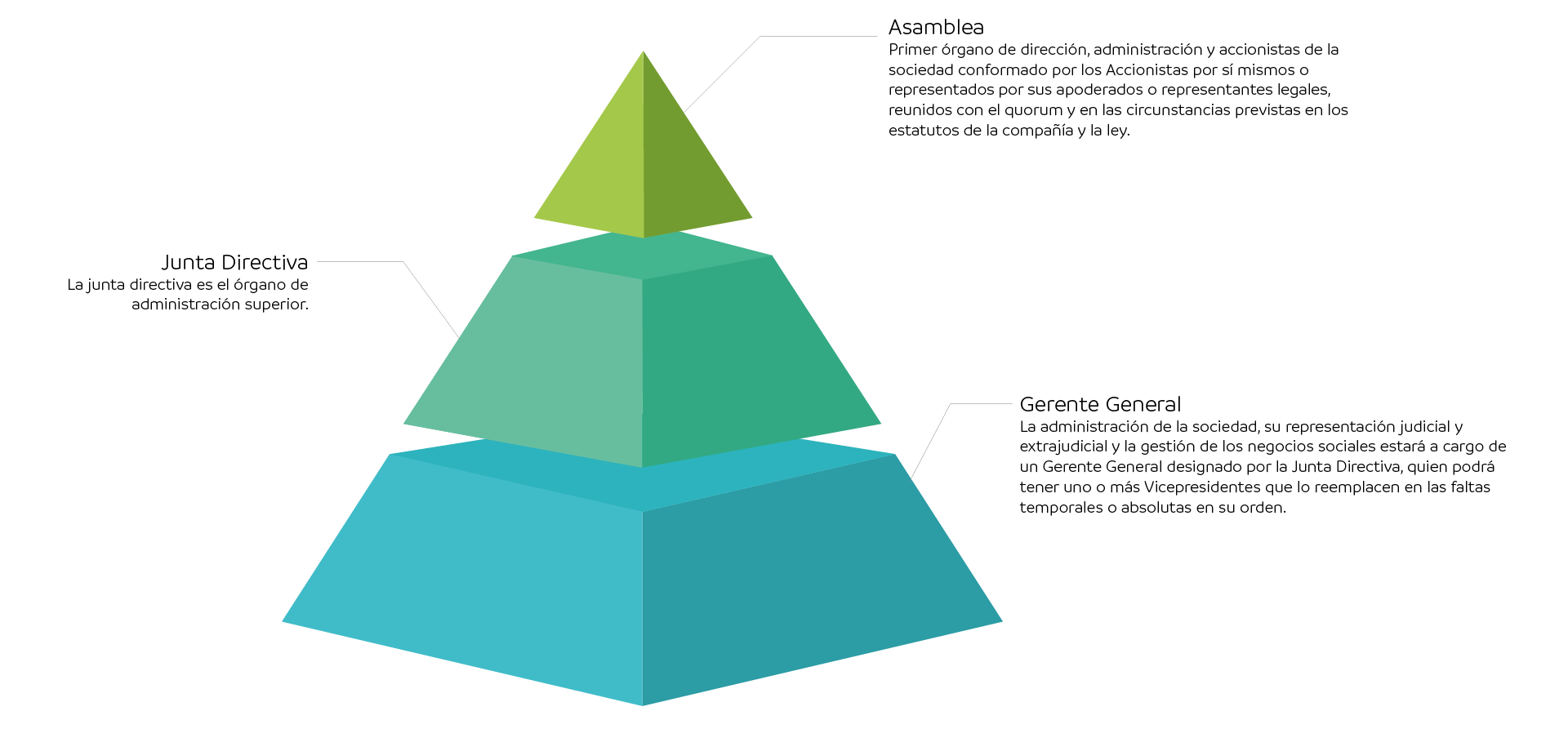 La Junta Directiva de la Sociedad está compuesta por seis (6) miembros principales con su respectivo suplente. La elección de los miembros de Junta Directiva se encuentra a cargo de la Asamblea General de Accionistas, y está regulada en los Estatutos Sociales de la compañía.